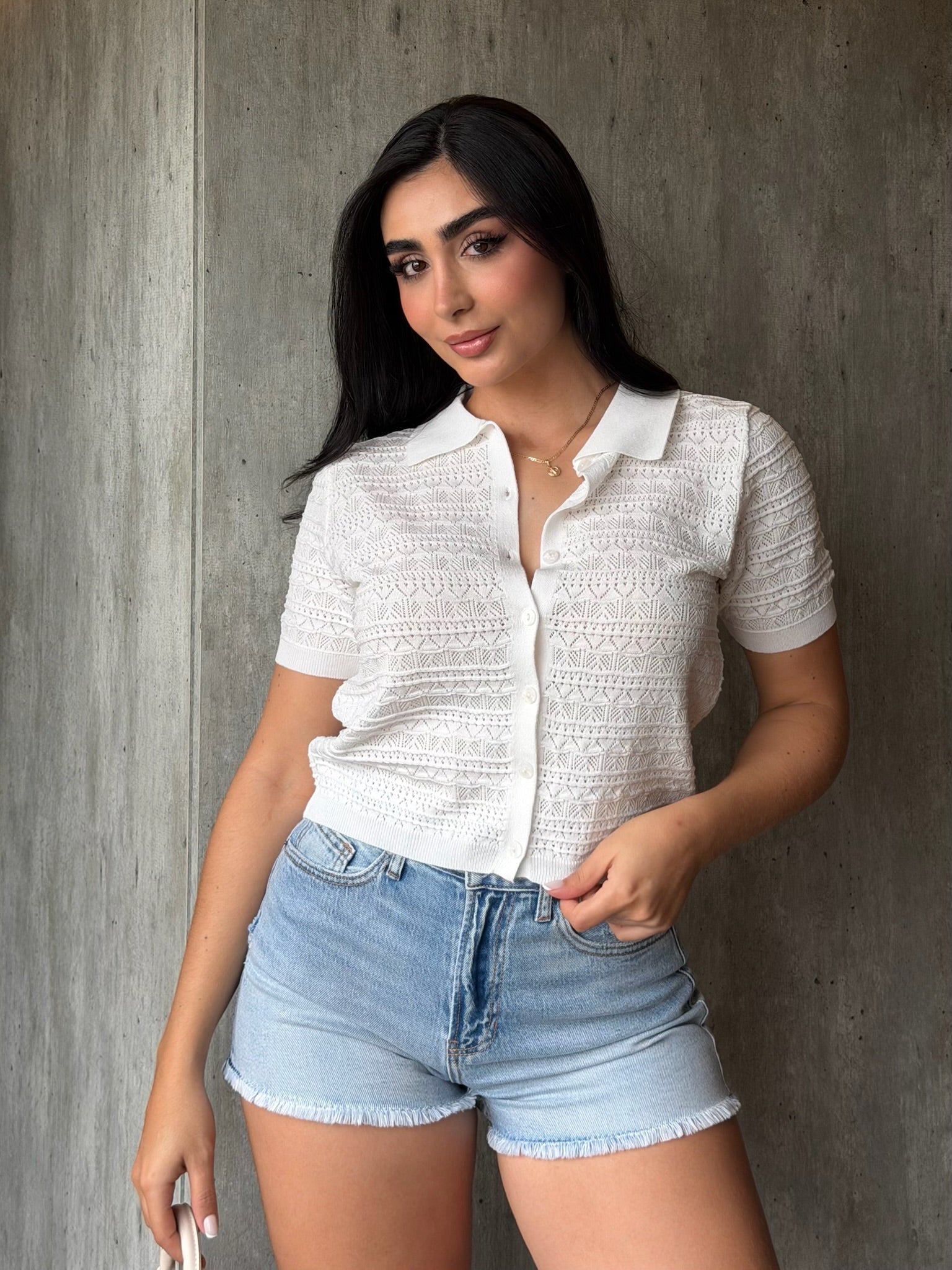 Blusa confeccionada en hilo de alta calidad, perfecta para mantener la frescura durante el día. Su diseño blanco clásico se adapta a cualquier ocasión, desde casual hasta más formal. El tejido ligero y transpirable garantiza comodidad en climas cálidos, permitiendo una excelente circulación del aire. Ideal para combinar con diferentes prendas y accesorios. Una pieza versátil y esencial para tu guardarropa.